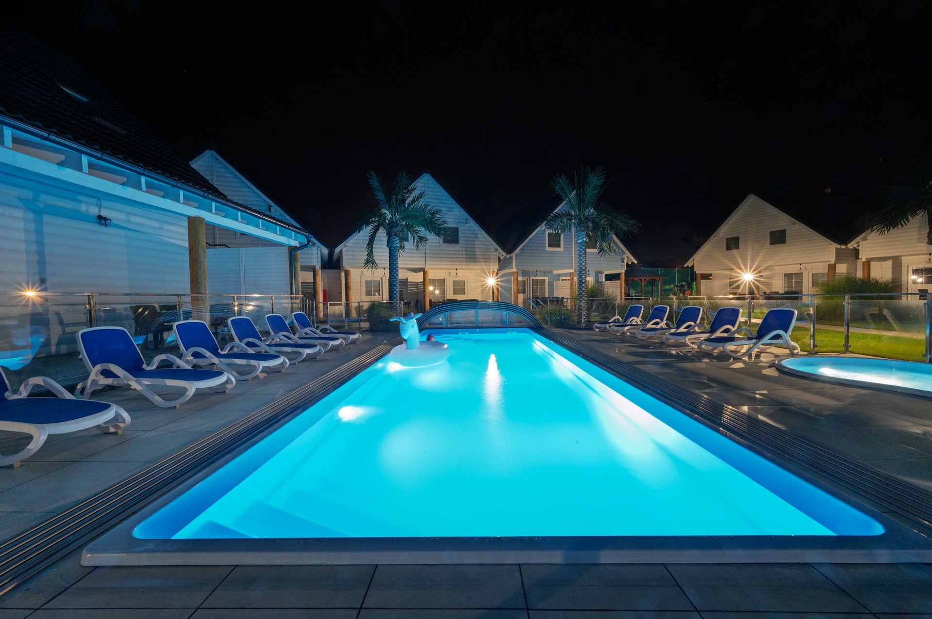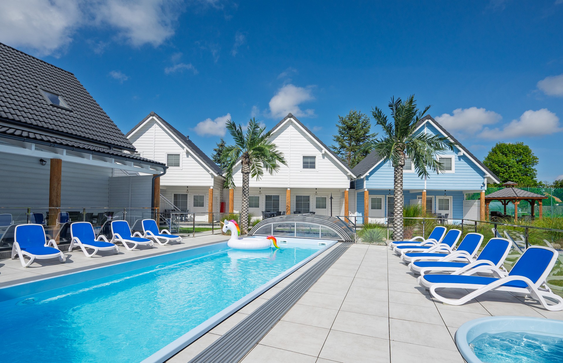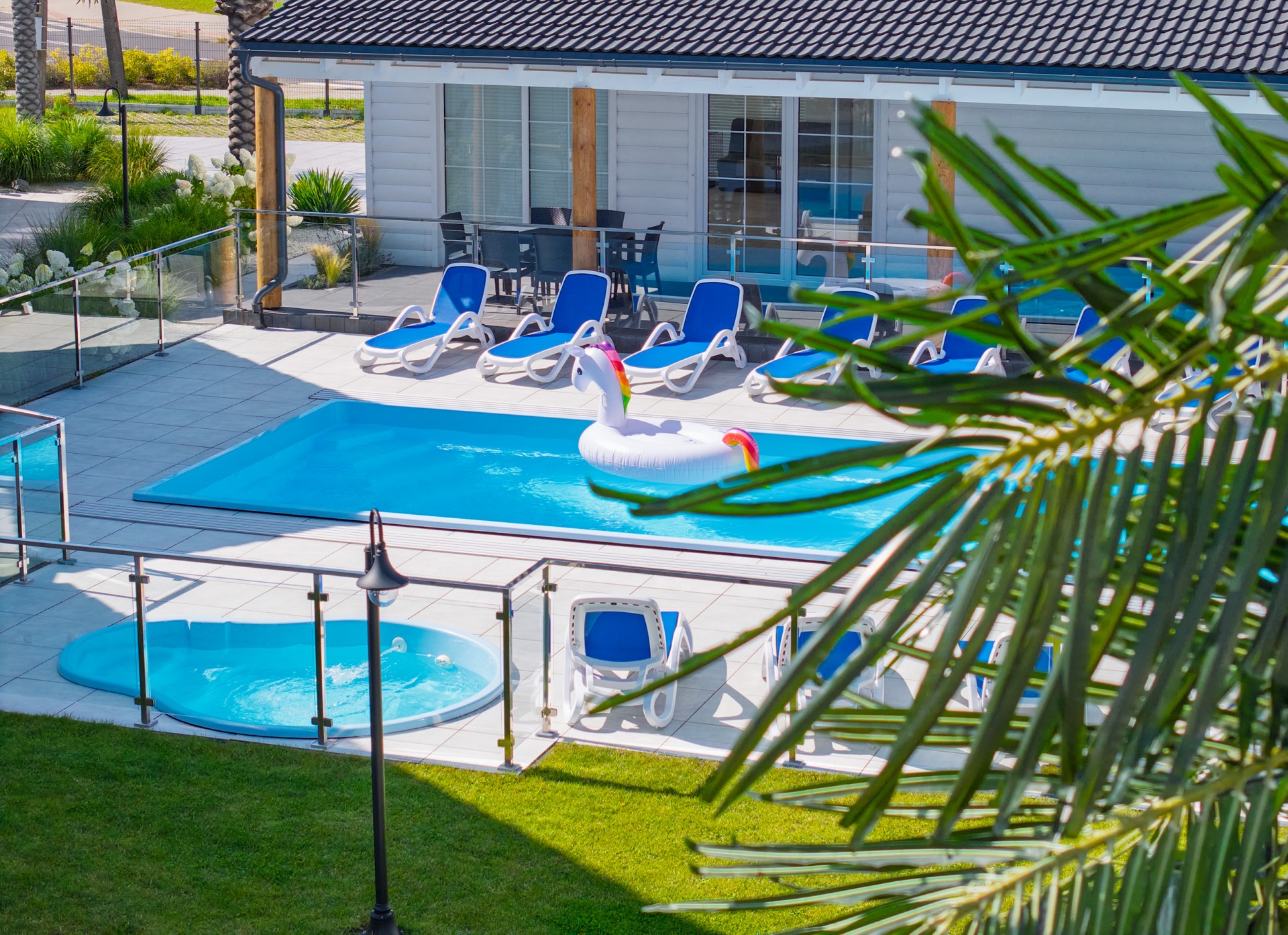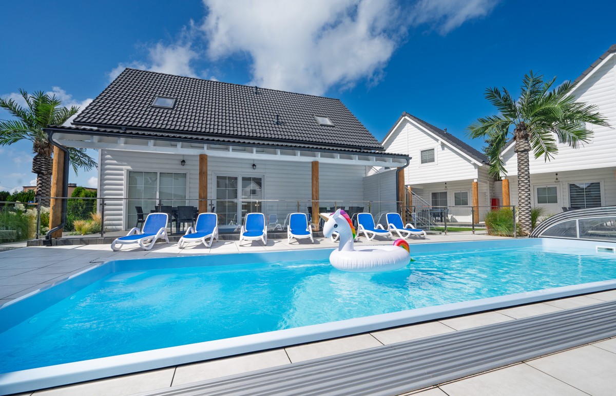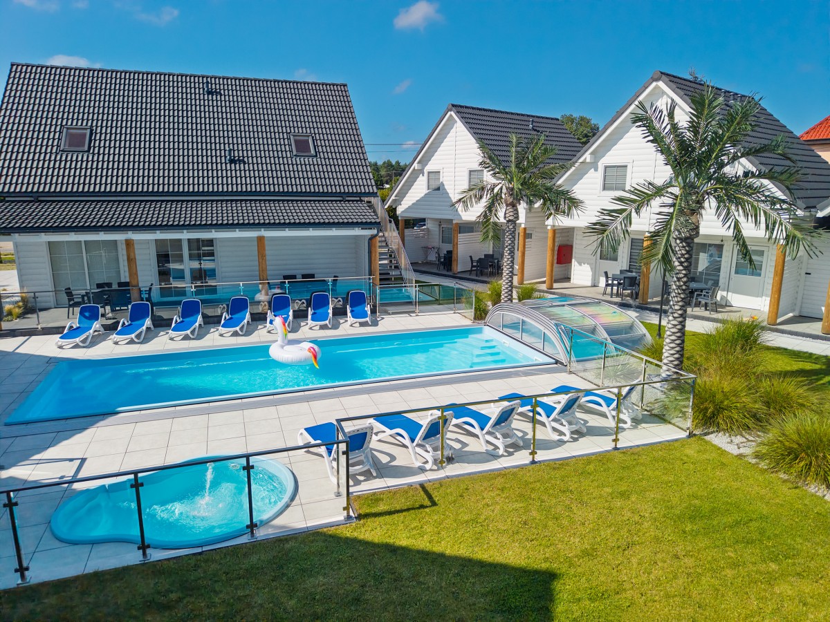 Basen jest podgrzewany i zadaszony (w razie potrzeby), otoczony plażą z leżakami. Dla większego bezpieczeństwa Naszych Gości basen jest ogrodzony.